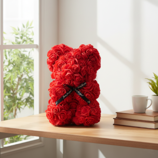 Handmade Rose Teddy Bear – Artificial Flower Rose Bear – Creative Valentine’s Day, Anniversary & Birthday Gift for Her