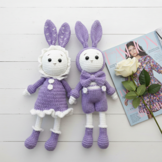 Handmade Crochet Bunny Couple Plushie – Valentine’s Day Amigurumi Gift – Cute Stuffed Animal Set
