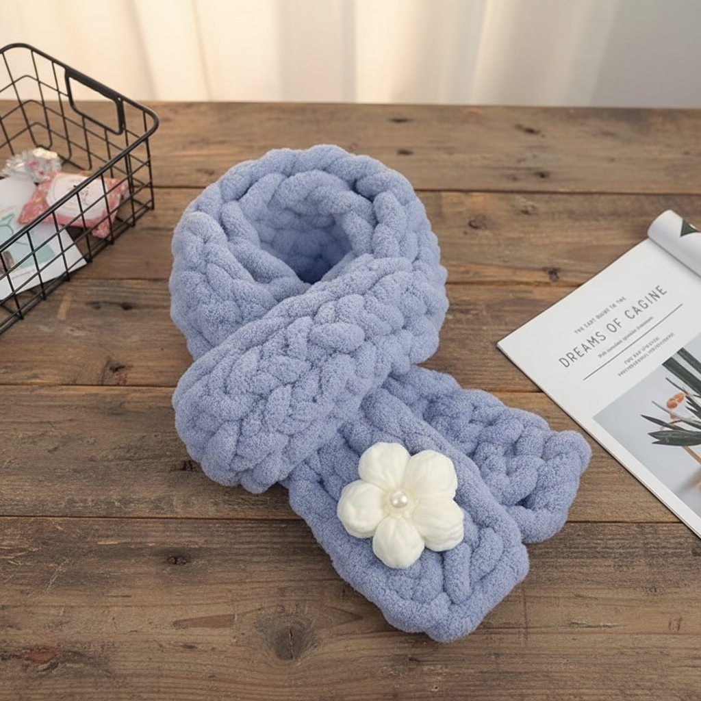 To preserve the softness of the Chenille yarn and the integrity of the hand-knitted loops, hand washing is recommended. Lay flat to dry to maintain the scarf’s shape and prevent stretching.