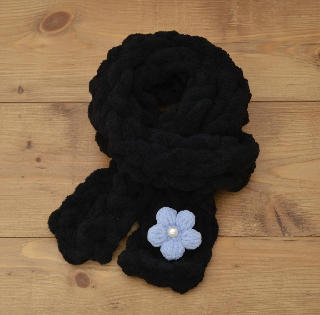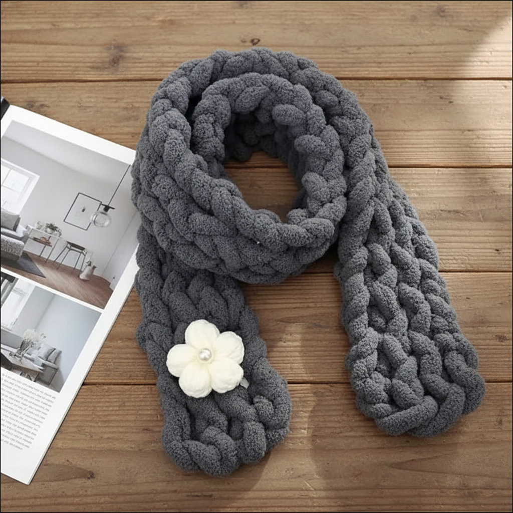 To preserve the softness of the Chenille yarn and the integrity of the hand-knitted loops, hand washing is recommended. Lay flat to dry to maintain the scarf’s shape and prevent stretching.