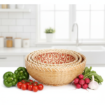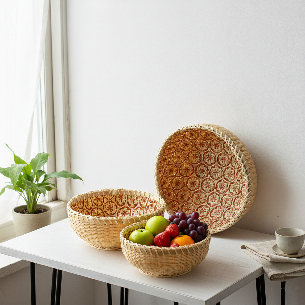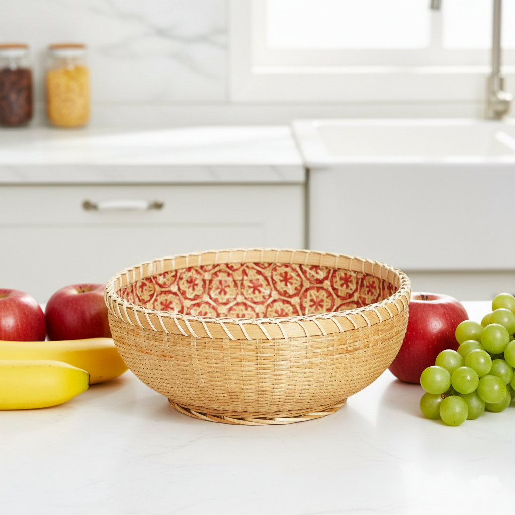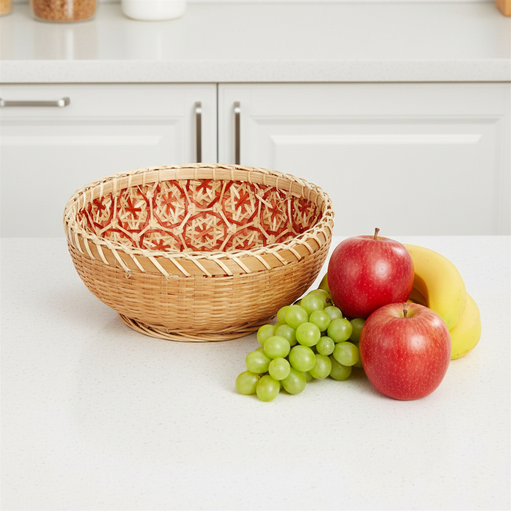 Handwoven Bamboo Fruit Basket – Decorative Kitchen Storage & Bread Bowl – Natural Woven Tableware