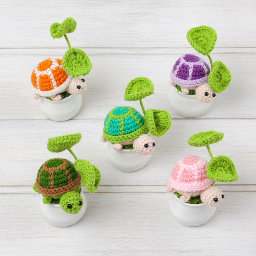 Mini Potted Plant Crochet Turtle
