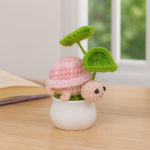 🐢 Adorable Crochet Turtle Plush in a Mini Pot: No-Fuss Desk Decor