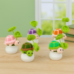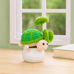 Bring a touch of handmade charm and cuteness to your space with this Mini Potted Plant Crochet Turtle Plush. This adorable amigurumi turtle is nestled inside a crisp white ceramic-look pot, featuring a colorful shell and a vibrant green crochet ‘succulent’ leaf sprouting from its back. It’s the perfect no-maintenance desk ornament or a delightful, unique gift for any animal or craft lover.