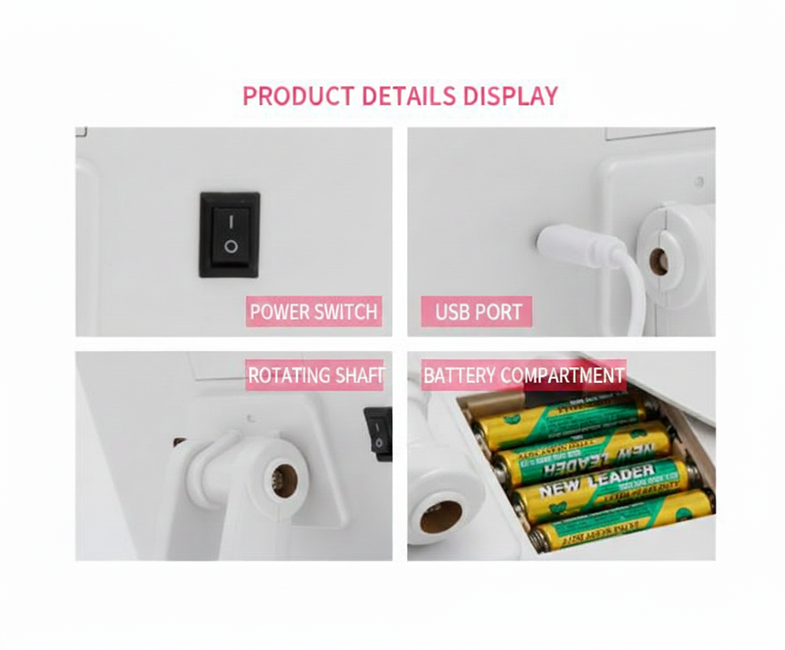 Dual Power Convenience: Use the included USB cable for a steady power source at your vanity, or power it with AAA batteries (not included) for cordless, portable use. Perfect for travel or areas without easy access to an outlet.