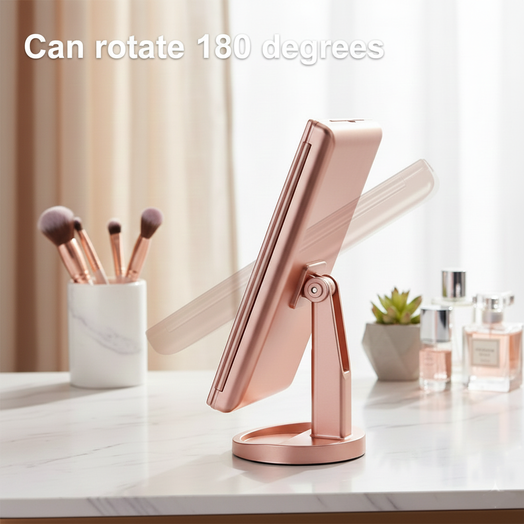 180° Swivel Stand & Storage Tray: Adjust the mirror’s angle up to 180° for comfortable viewing whether sitting or standing. The wide, sturdy base also doubles as a practical storage tray for holding small cosmetics, jewelry, or beauty tools.