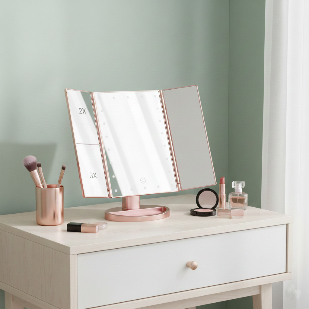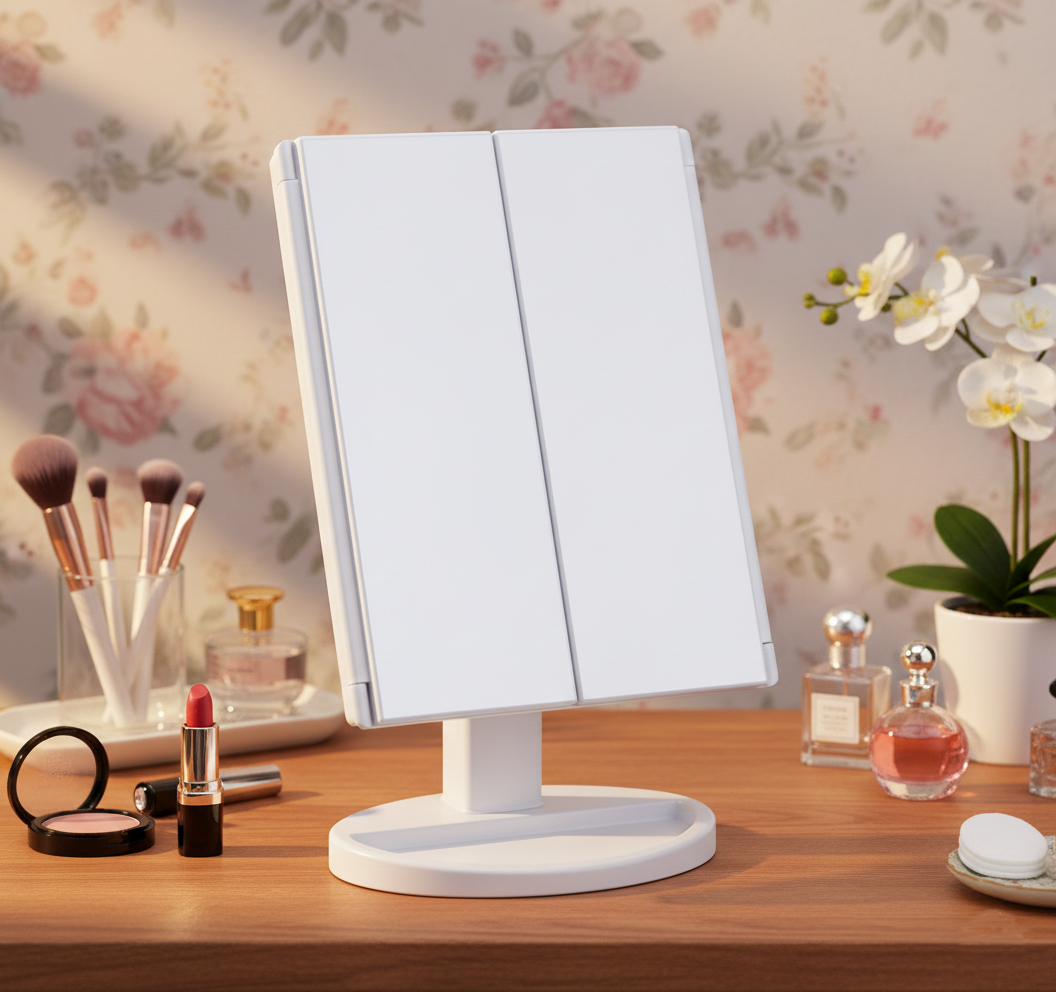 Looking for a reliable, multi-functional lighted mirror? The Tri-Fold LED Makeup Mirror offers the clarity and lighting you need for a truly professional makeup finish, every time.